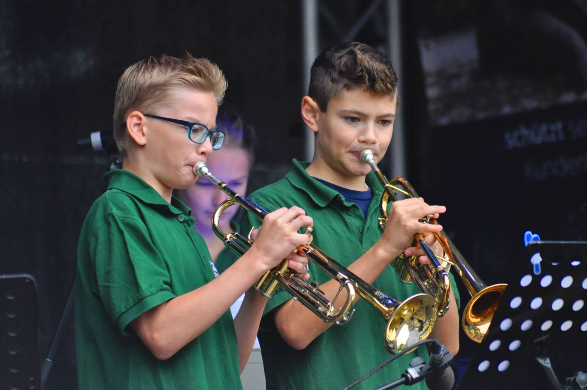 Unsere Jazzband Trøt [Tröt] gab am Samstag auf der großen Dorffest-Bühne ein Konzert und hat dort für jazzige Stimmung gesorgt. Dabei präsentierte die Band eine große Vielfalt an Stücken – das Ergebnis der intensiven Probenarbeit der letzten Wochen konnte sich hören lassen. Pascal Krieger, der die Moderation des Bühnenprogramms übernahm, sowie zahlreiche treue und neue Zuhörerinnen und Zuhörer waren begeistert. Und sogar das Wetter hat mitgegroovt!