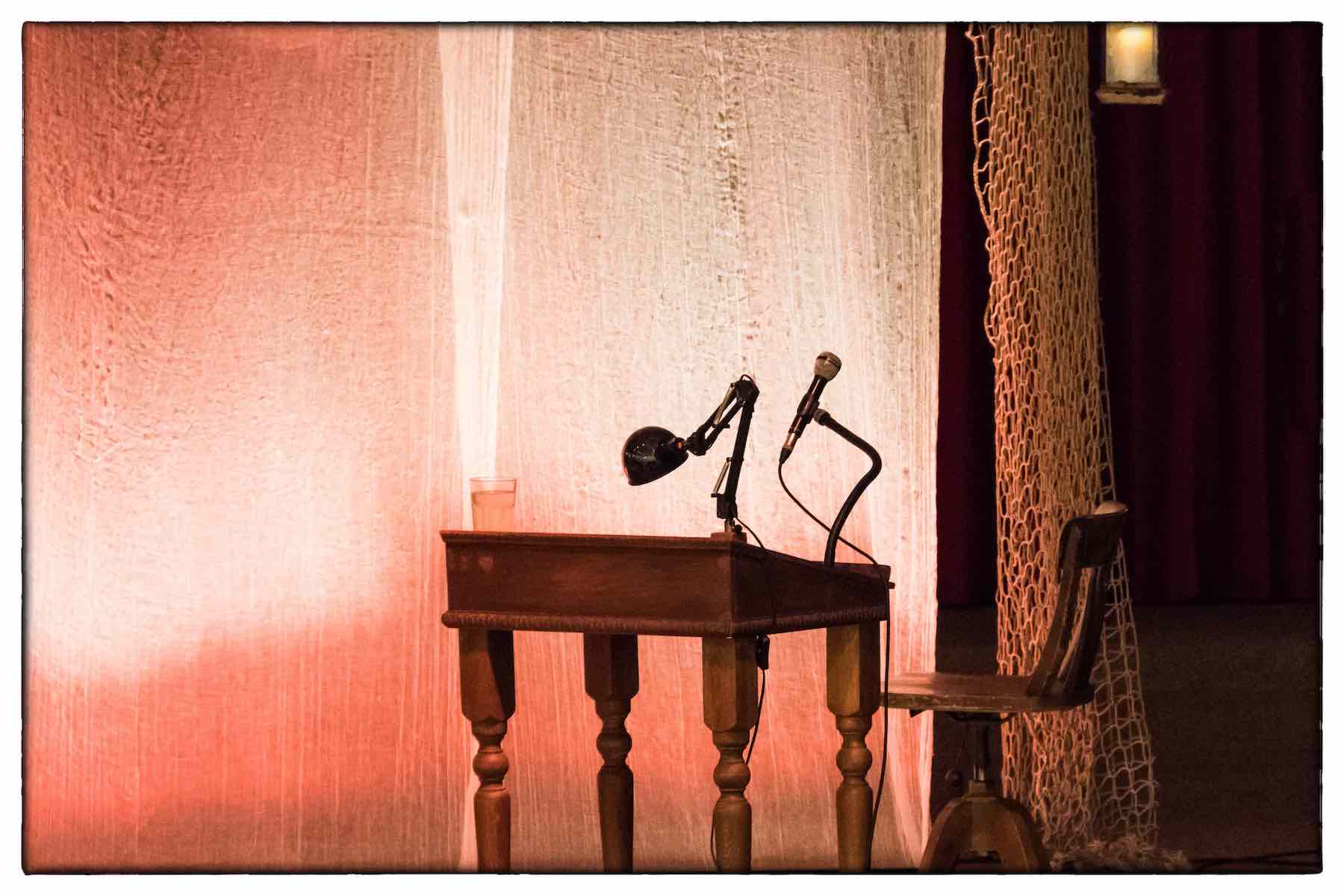 Was das gute alte große Forum unserer Schule so alles möglich macht: Großes, analoges Kopfkino unter dem morbiden Betonfirmament. Es bedarf aber beileibe keines übermächtigen Rahmens, wenn es einem Künstler gelingt, sein Publikum auf eine (Fantasie-)Reise mitzunehmen.