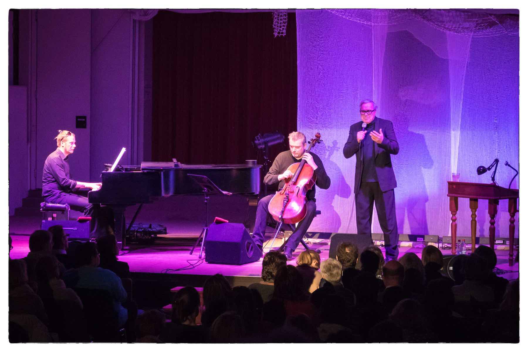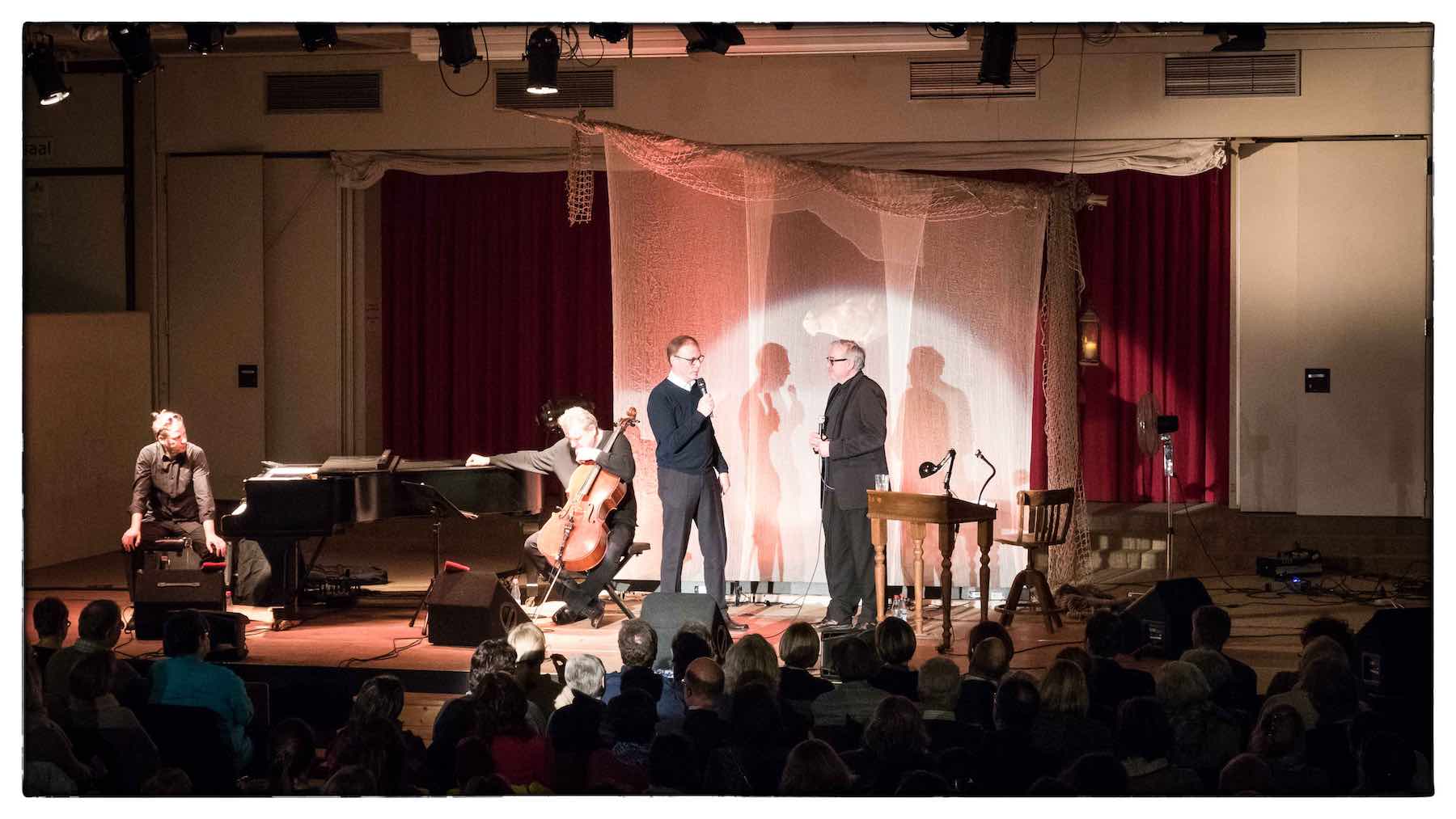 Stefan Gwildis ist dieses bei seiner Benefiz-Lesung des “Schimmelreiters” am vergangenen Freitagabend eindrucksvoll gelungen. Musikalisch durch den Abend begleitet von Tobias Neumann (Flügel) und Hagen Kuhr (Cello) und eingeleitet durch seinen Song “Mein Meer” liest und interpretiert Gwildis anschließend die Novelle von Theodor Storm in einer ganz eigenen Fassung. Der Protagonist, Deichgraf Hauke Haien, erscheint dem Zuhörer schon bald leibhaftig vor Augen und dank Gwildis´ Fähigkeit, allen Figuren eine(n) ihr eigene(n) Stimme und Charakter zu leihen, reihen sich weitere Bilder aneinander. Erst harmonisch, dann aufbrausend und schließlich dramatisch wendet sich der Abend bis zum finalen Deichbruch. Zurück bleibt ein kurzzeitig aus dem Jetzt entrücktes, begeistertes Publikum.