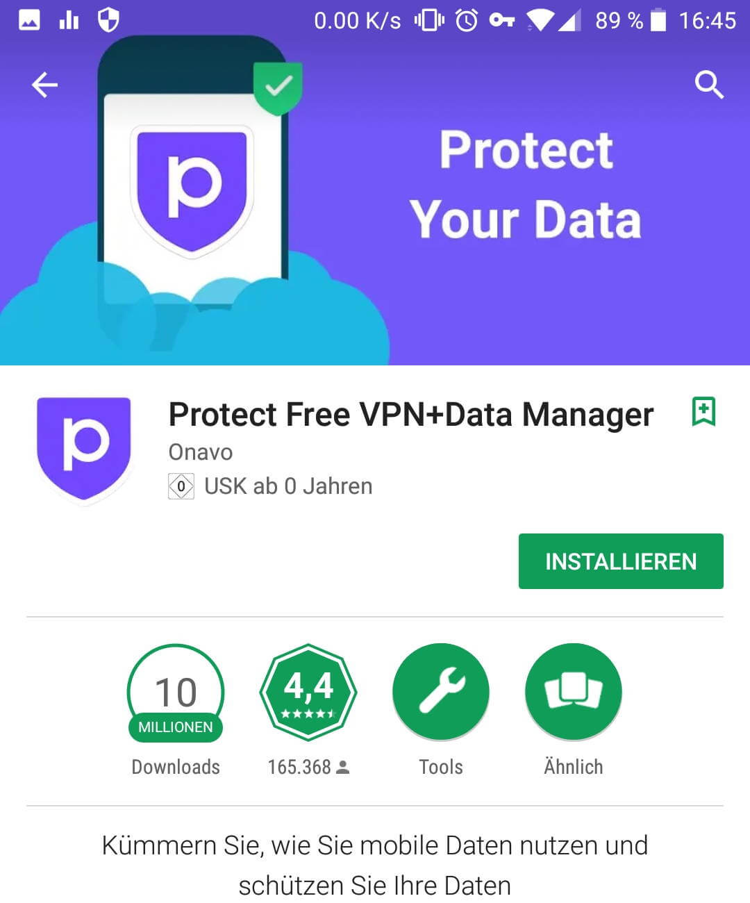 Richtig, man will sich schützen! Also schaut man erst einmal im App Store nach einer App, die schützen soll. Und plötzlich – nach der Suche ganz weit oben: Eine App mit dem Namen Onavo Protect oder auch Onavo VPN oder einfach Protect – wahrscheinlich eine professionelle und vertrauenswürdige App. Der Name klingt jedenfalls nach einer wichtigen Programmiersprache oder IT-Slang (den man zwar eh nicht verstehen würde), aber gerade deshalb besonders vertrauenswürdig kling; sehr schön – scheint etwas „zauberhaftes“ zu sein.