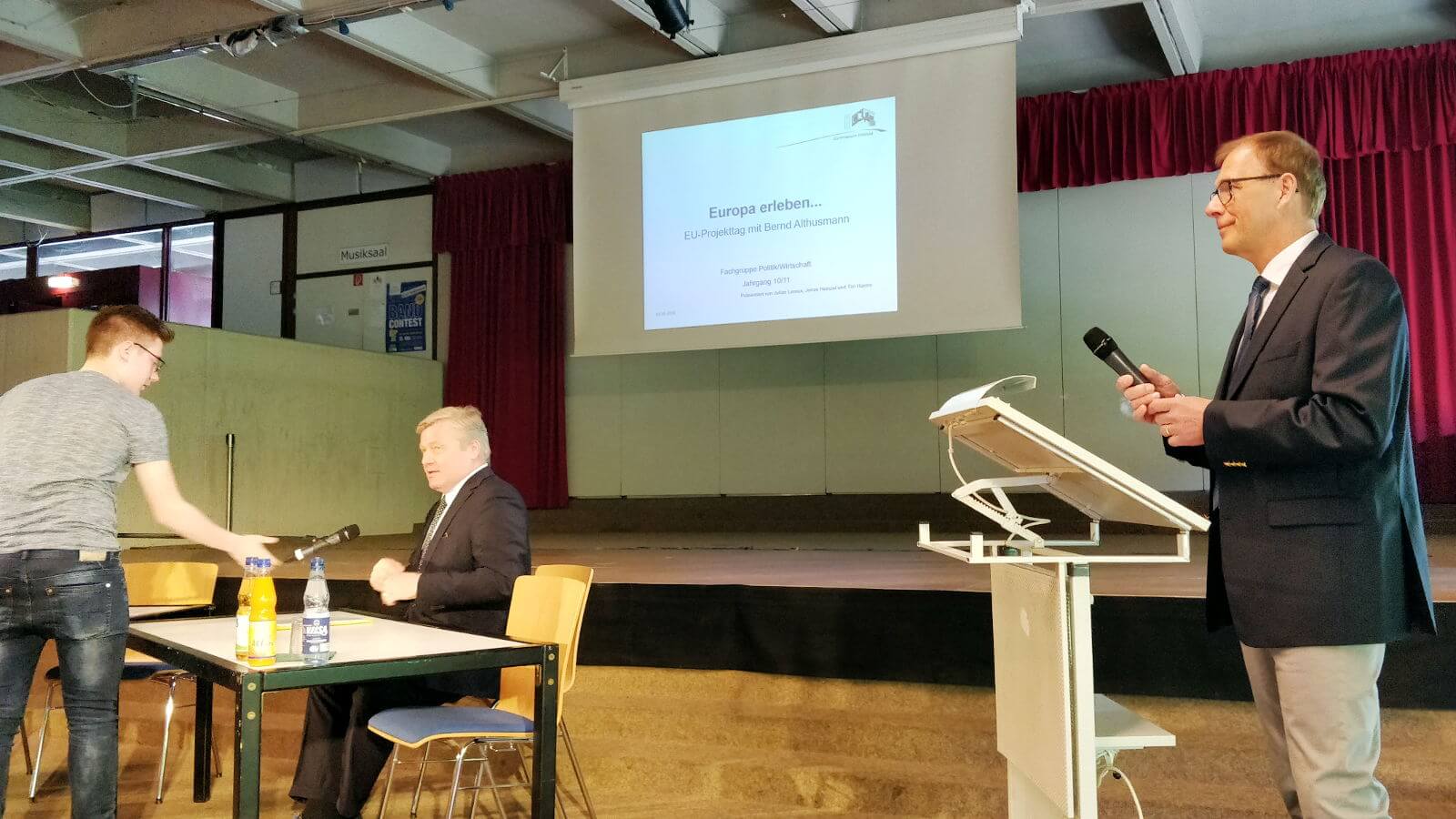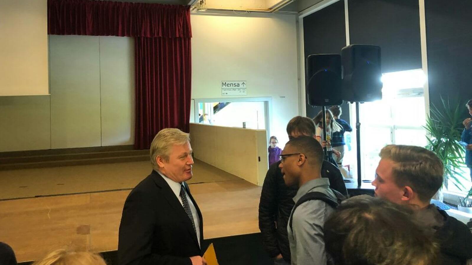 Unter dem Motto „Europa erleben“ besuchte der stellvertretende niedersächsische Ministerpräsident und Minister für Wirtschaft, Arbeit, Verkehr und Digitalisierung, Dr. Bernd Althusmann am 4 Mai. 2018 das Gymnasium Hittfeld. Die Veranstaltung fand im Rahmen des internationalen Europatages am 08. Mai 2018 statt.