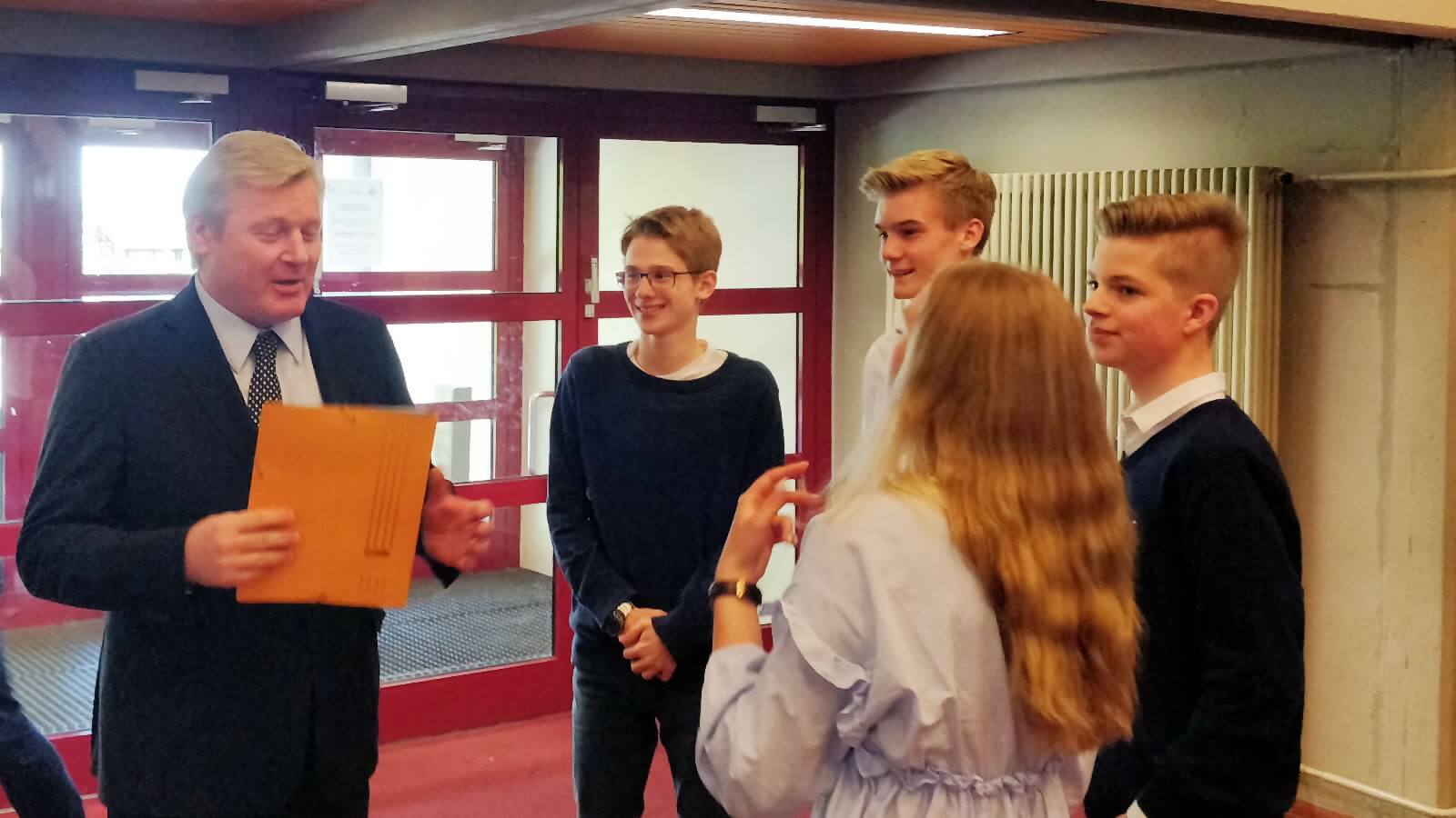 Für die Schülerinnen und Schüler war es eine tolle Erfahrung, einen hochrangigen Politiker in der eigenen Schule zu Gast zu haben und ihn einmal so richtig „löchern“ zu dürfen. Und auch Dr. Althusmann hatte nach eigener Aussage viel Freude daran, mit den jungen Leuten über Politik zu diskutieren und sich gerade auch ihren kritischen Fragen zu stellen.