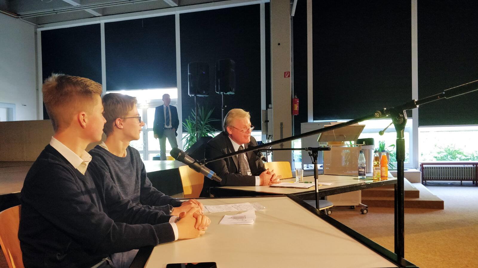 „Wir waren sehr positiv von den vielen Fragen und dem gezeigten Interesse angetan. Die Schülerinnen und Schüler haben die Gelegenheit genutzt, mit Herrn Dr. Althusmann ins Gespräch zu kommen. Auch er war sehr sympathisch, gelassen und humorvoll und konnte mit ausführlichen Antworten und spannenden Sichtweisen bei den Schülerinnen und Schülern punkten“, zog Moderator Julian Leroux Bilanz.