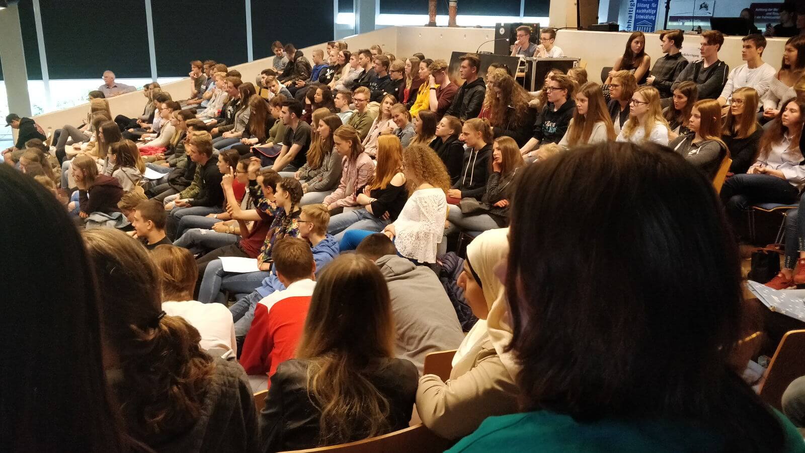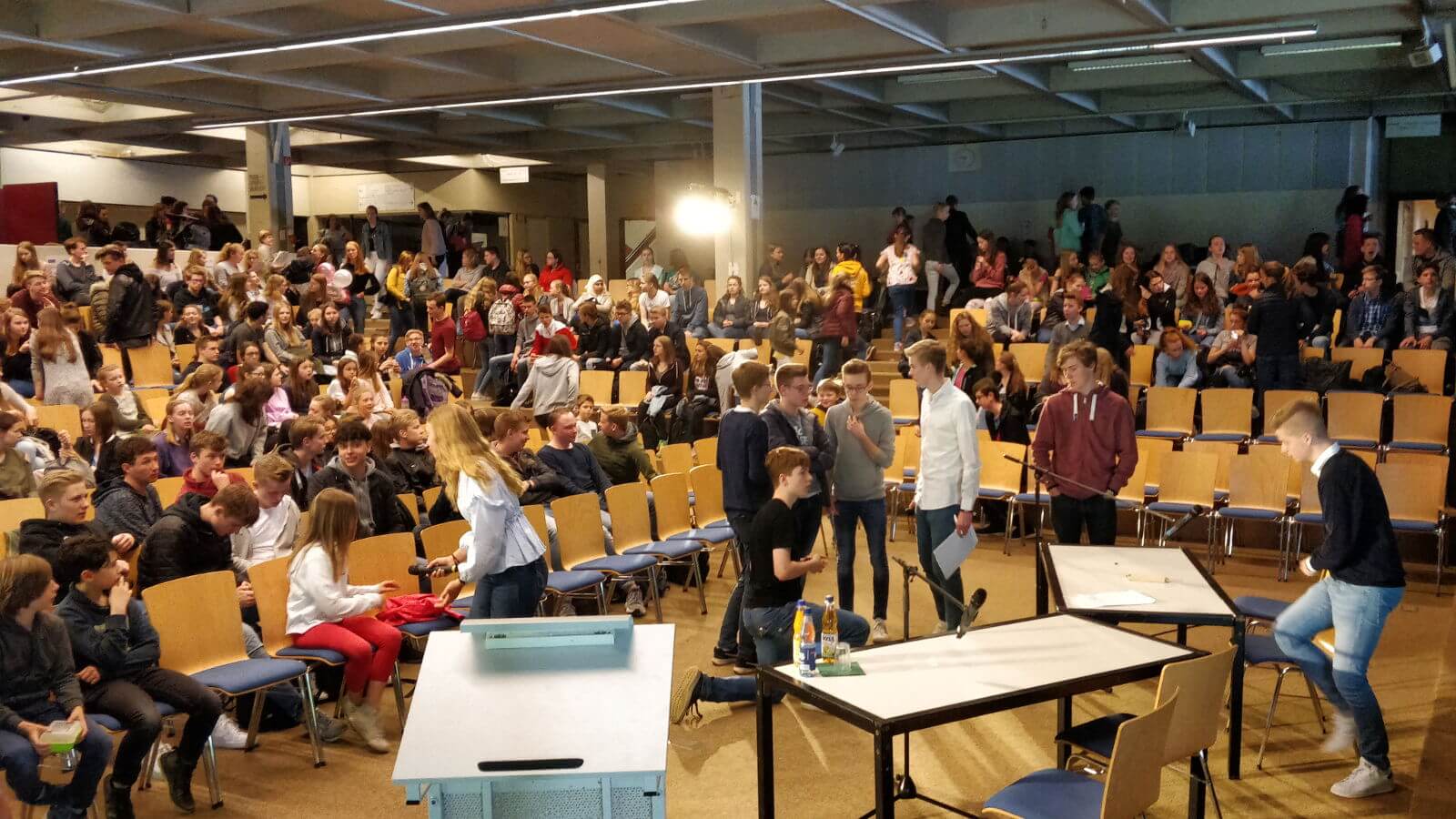 Pünktlich wurden die knapp 300 Schüler zunächst von Schulleiter Frank Patyna und den Moderatoren Julian Leroux, Tim Harms, Jonas Heinzel und Amélie Jacobs und anschließend von Herrn Dr. Althusmann begrüßt. Die Moderatoren hatten sich schon im Vorwege auf die hitzigen Diskussionen mit der „Politprominenz“ gründlich vorbereitet und sich geeignetes Vorwissen verschafft.