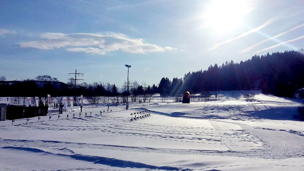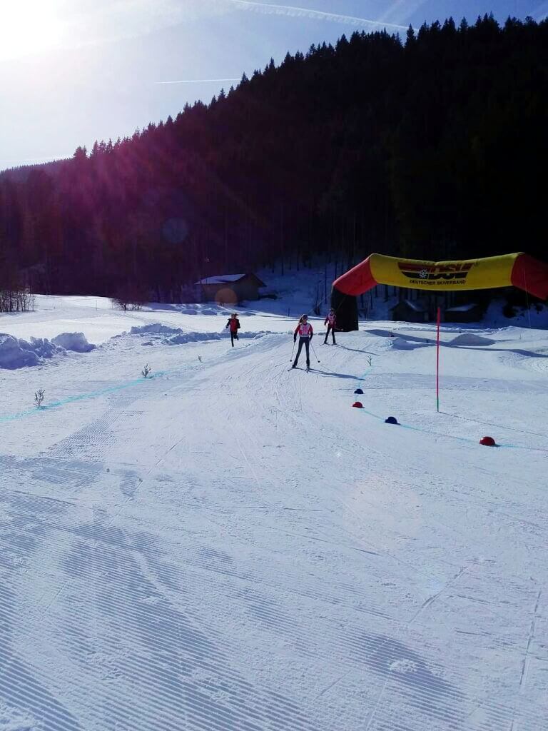 10:00 Uhr Start, es scheint noch ewig bis dahin und dann vergeht die Zeit doch schnell. Nochmal Ski ausbürsten und polieren, erwärmen, Ski testen und einfahren und schon geht’s los. Auf dem Weg zum Start begegnen uns einige Jugendliche mit Team Germany Kleidung, die sind beeindruckend schnell und wendig. Immer mal wieder kommen Durchsagen von schnellsten Streckenzeiten in Zusammenhang mit einem Elitegymnasium. Hilft nicht wirklich gegen die Aufregung… Am Start geht es gleich los mit einem Slalom und wir beobachten einige Stürze. Die (An-)Spannung steigt. Und dann: Gymnasium Hittfeld komm hopp, auf geht’s! Unsere Einzelstarter gehen nach und nach auf die Runde und erreichen am Ende eine tolle Teamzeit!