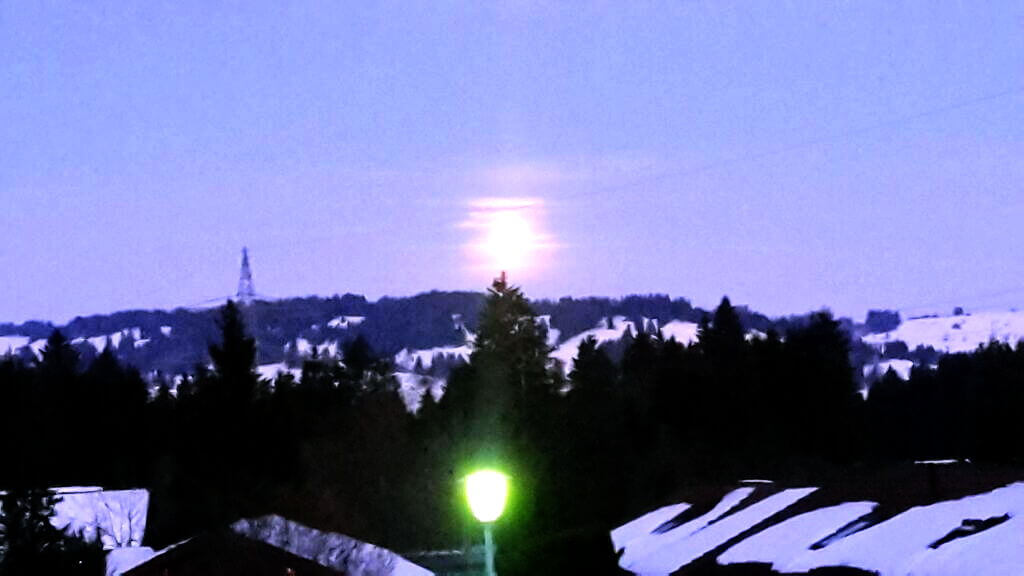 6:45 Uhr, der Vollmond leuchtet uns den Weg zum Frühstück. Alles dabei, frisch gewachste Ski, Wettkampfkleidung, Proviant für den Tag.