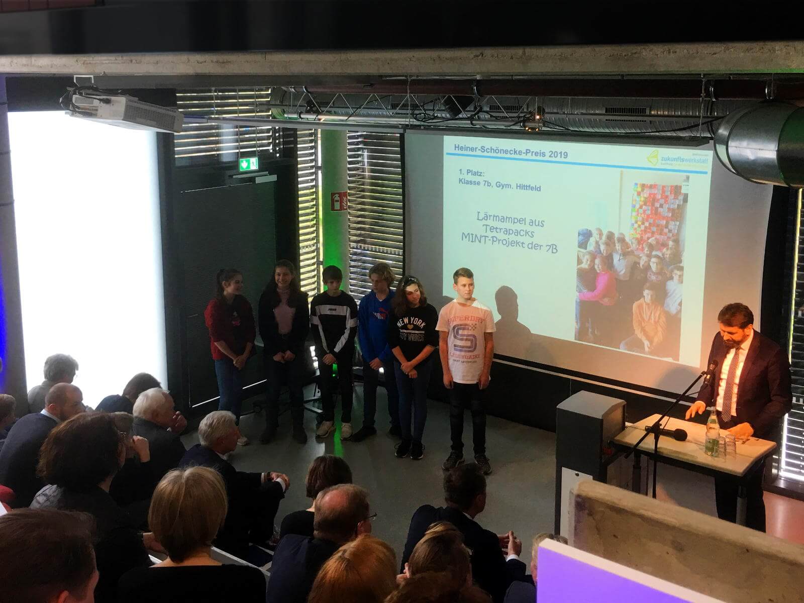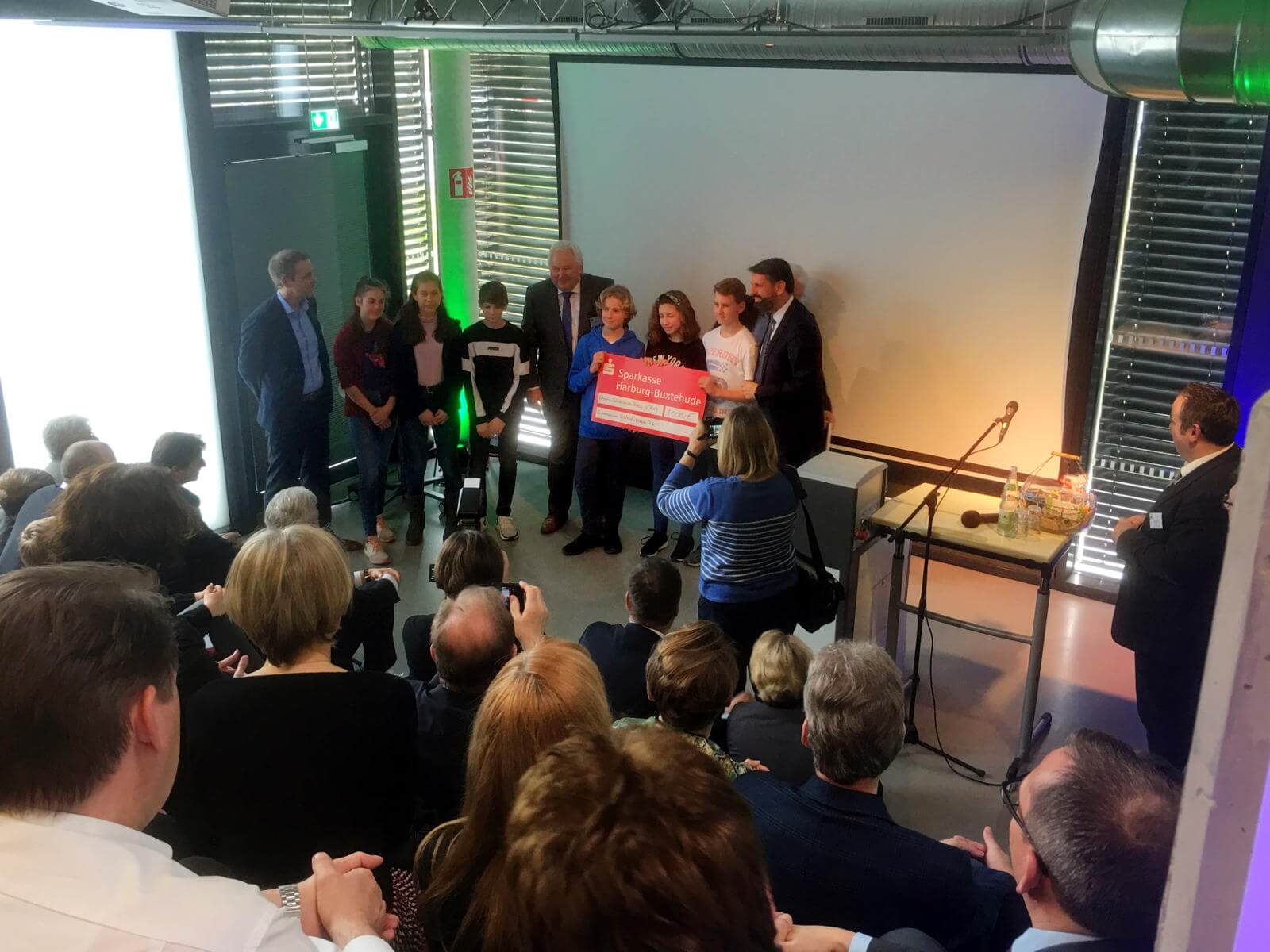 Am 21. März, dem Geburtstag des Namensgebers Heiner Schönecke, sollte unter den Augen u.a. des niedersächsischen Umweltministers Olaf Lies und des Landrates Rainer Rempe sowie vieler Interessierter es dann endlich zur Preisverleihung kommen – mit dabei auch sechs Vertreter unserer 7b.