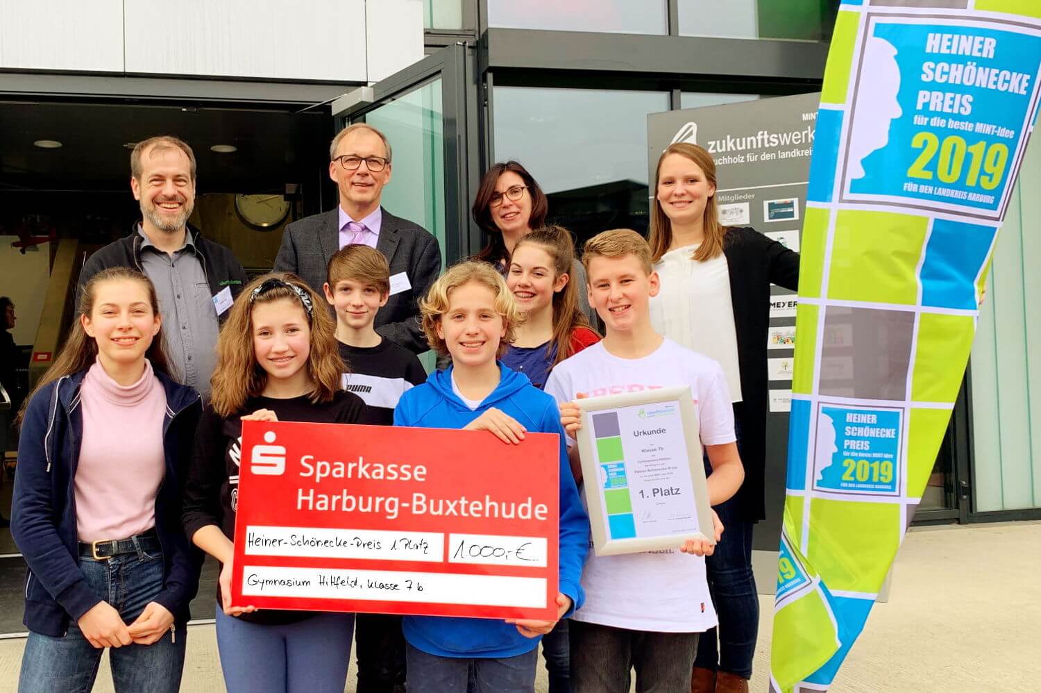 Bewerbung der 7b zum Heiner-Schönecke-Preis (59 Downloads )Auch andere Schulen haben sich Gedanken gemacht, das Ziel des Wettbewerbs umzusetzen. So sind unsere Schüler mit ihrer Idee u.a. gegen eine nachhaltige Gestaltungsidee einer grünen Ausgleichsfläche auf einem Schulgelände (Platz 3, Klasse 7, OBS Jesteburg) und einen temperaturgeregelten Thermobecher (2. Platz, Klasse 11-2, Gymnasium Neu Wulmsdorf) angetreten.