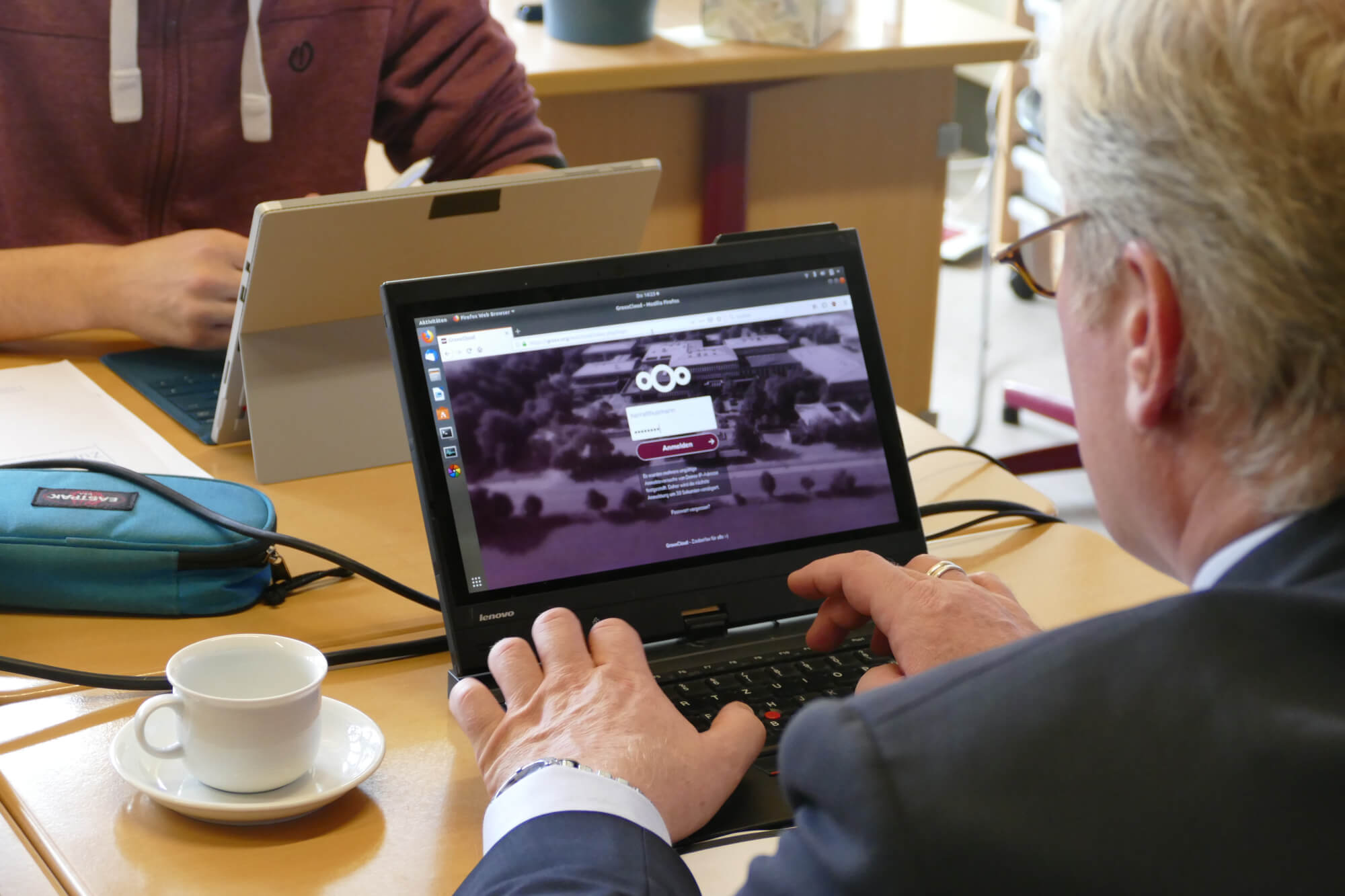 Schnell begann das Gespräch und Herr Dr. Althusmann zeigte sich begeistert von dem bisherigen Stand der Digitalisierung an unserer Schule. Die schuleigene Cloud, welche er interessiert ausprobierte und das innovative Projekt der #Webcoaches taten es ihm besonders an. Auch sah er große Chancen für das kollaborative Arbeiten mithilfe eines Etherpads (mit dem übrigens auch dieser Artikel von allen Schülervertretern gemeinsam erarbeitet wurde).