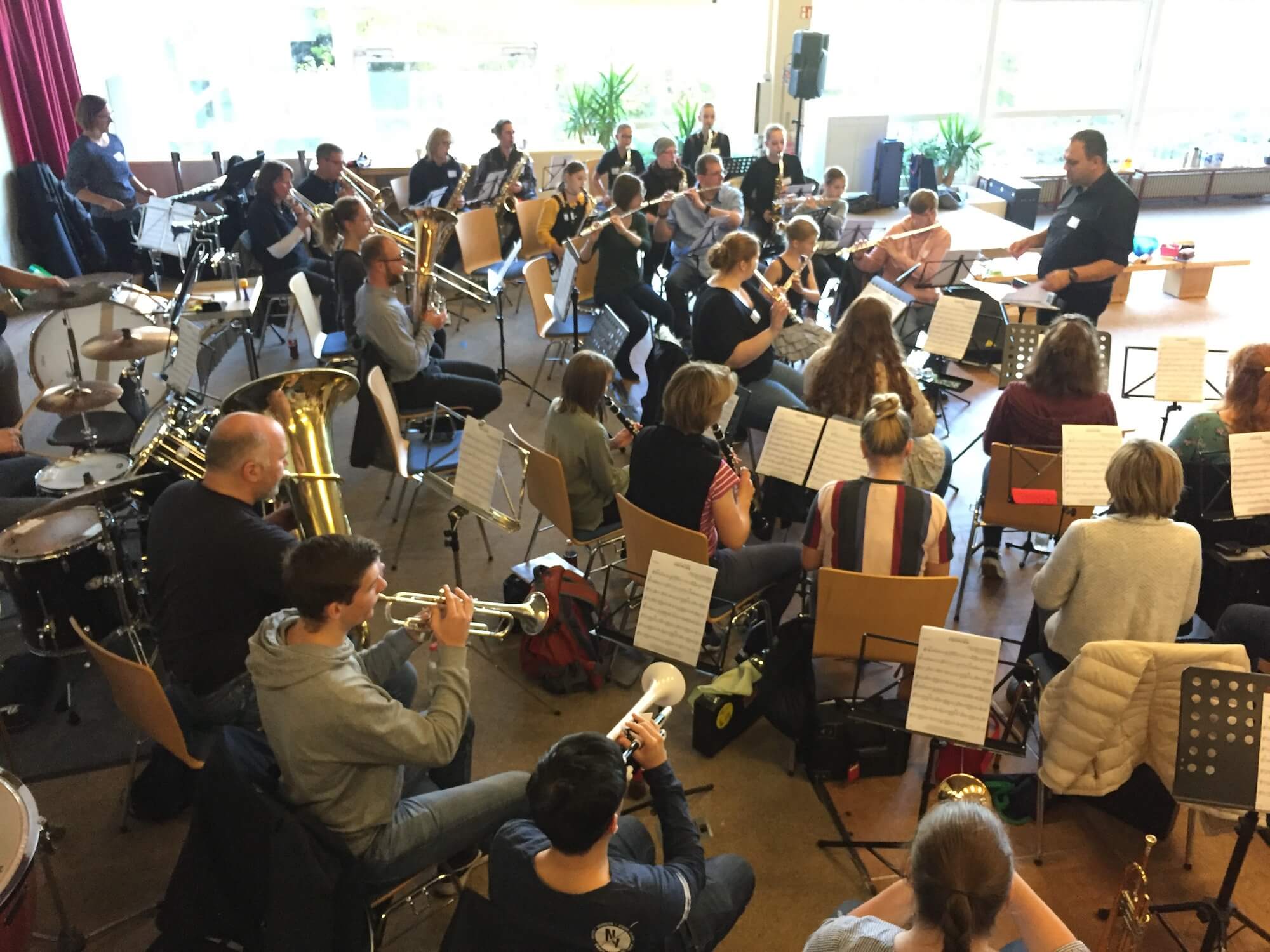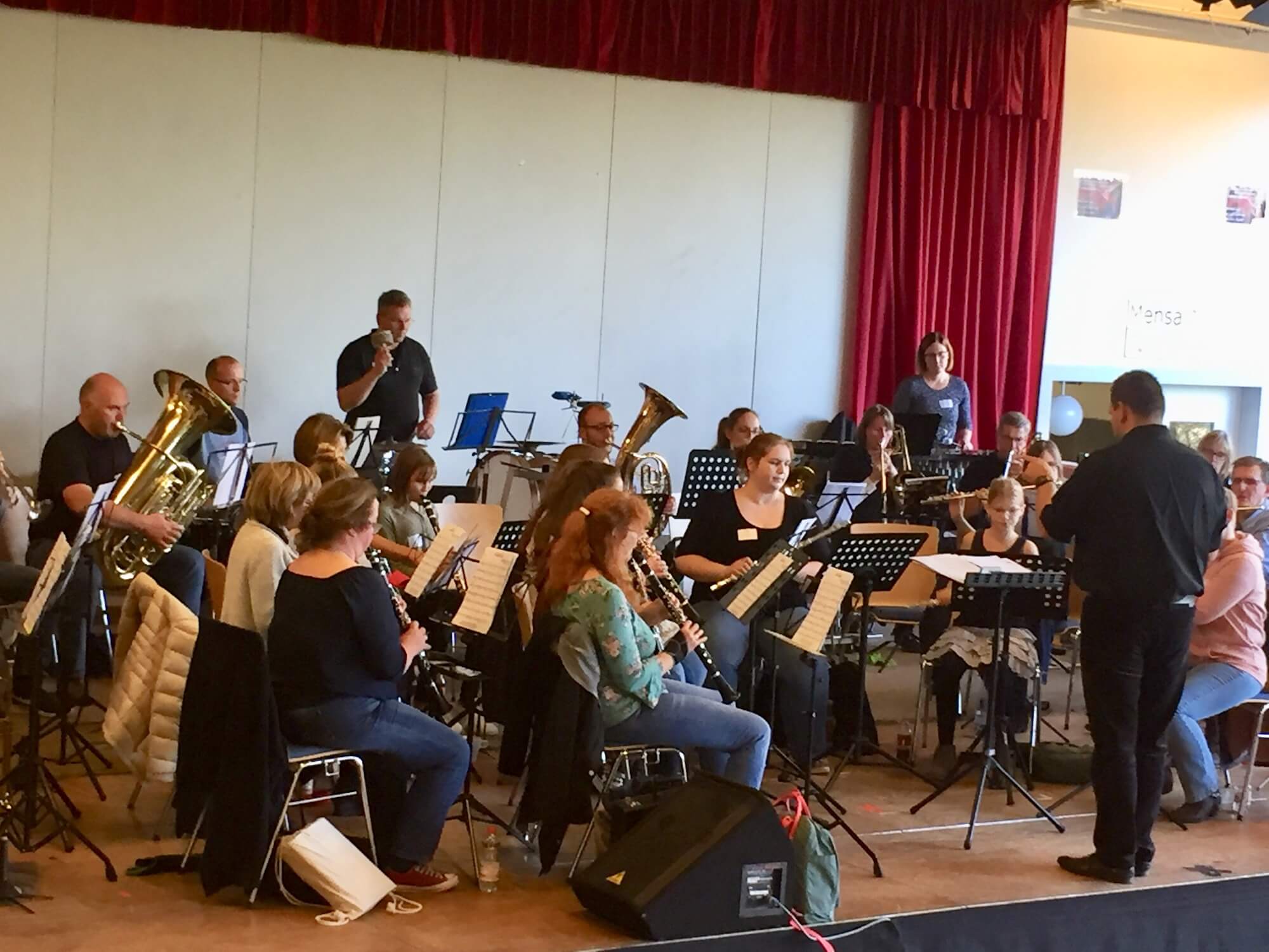 Wie im letzten Jahr veranstaltete das Orchester unter der Leitung von Carsten Klein in Kooperation mit Meike Böge vom Gym Hittfeld einen Workshop für BläserInnen ab einem Jahr Spielerfahrung auf ihrem Instrument. In diesem Jahr kamen nicht nur TeilnehmerInnen des Gymnasiums, sondern auch Mitglieder der Bläserklasse an der Oberschule Jesteburg in Begleitung von Frau Rihm sowie Mitglieder der Erwachsenenbläserklasse „Da Capo“ im TV Meckelfeld.