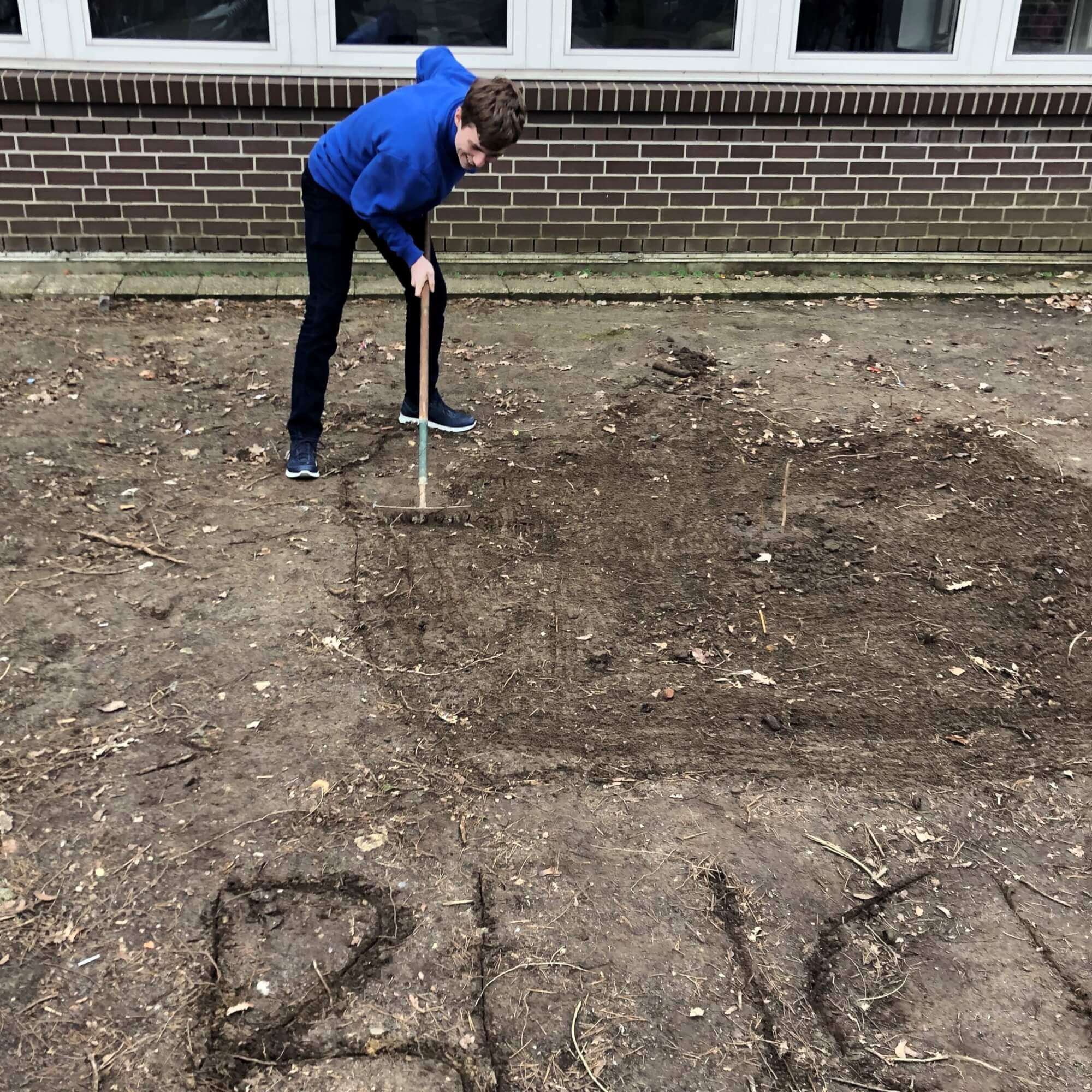 Gemeinsam mit Herrn Bechmann, Frau Drewes sowie Herrn Rathje haben Julian und Leif die verfügbaren Pflanzplätze überprüft und jeden möglichen Platz auf und um das Schulgelände abgeklopft. Aufgrund der anstehenden Bauarbeiten des „Oberstufenhauses“ unserer Nachbarschule und den kommenden Renovierungsarbeiten in unserem Gebäude konnte leider nur der Platz vor dem Eingang für einen Baum und Beplanzung zur Verfügung gestellt werden.