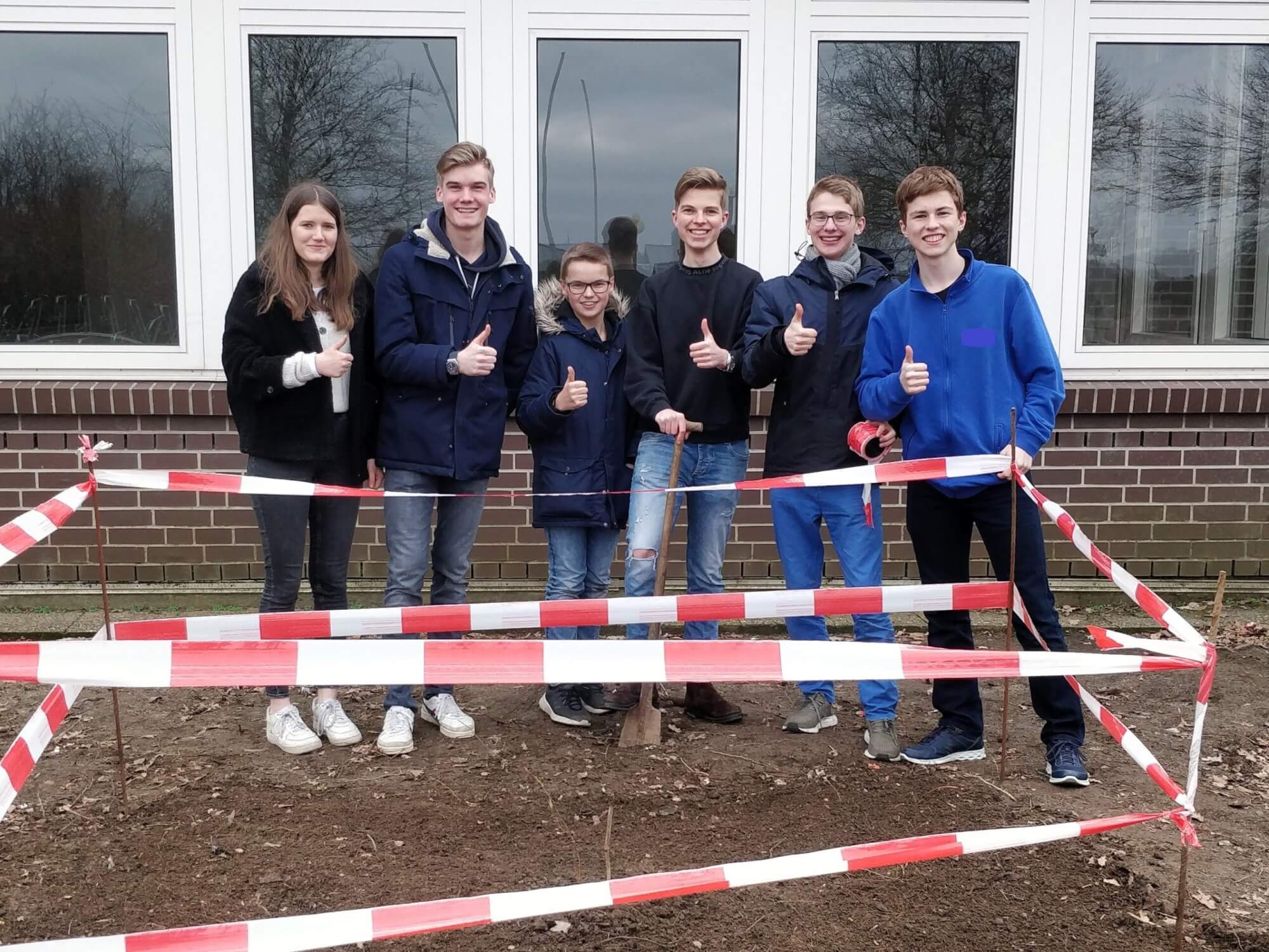 Das schnelle Engagement des Schülersprecherteams wurde allerdings gelobt und nach den Bauarbeiten kann sich die Schülerschaft bei der Begrünung mit Buddeln und Pflanzen noch mehr Einsetzen, als es Vincent schon jetzt mit seiner Buche gemacht hat.