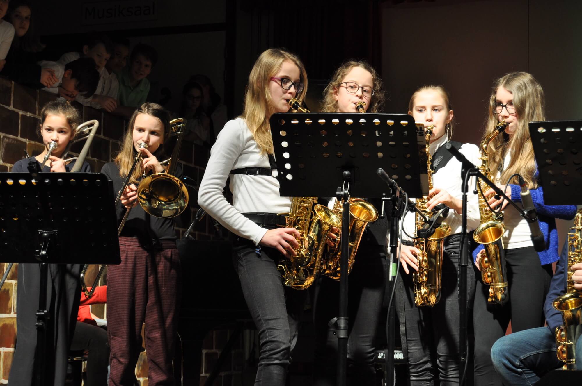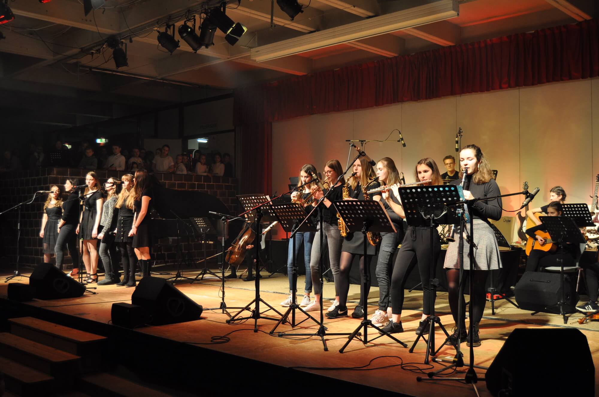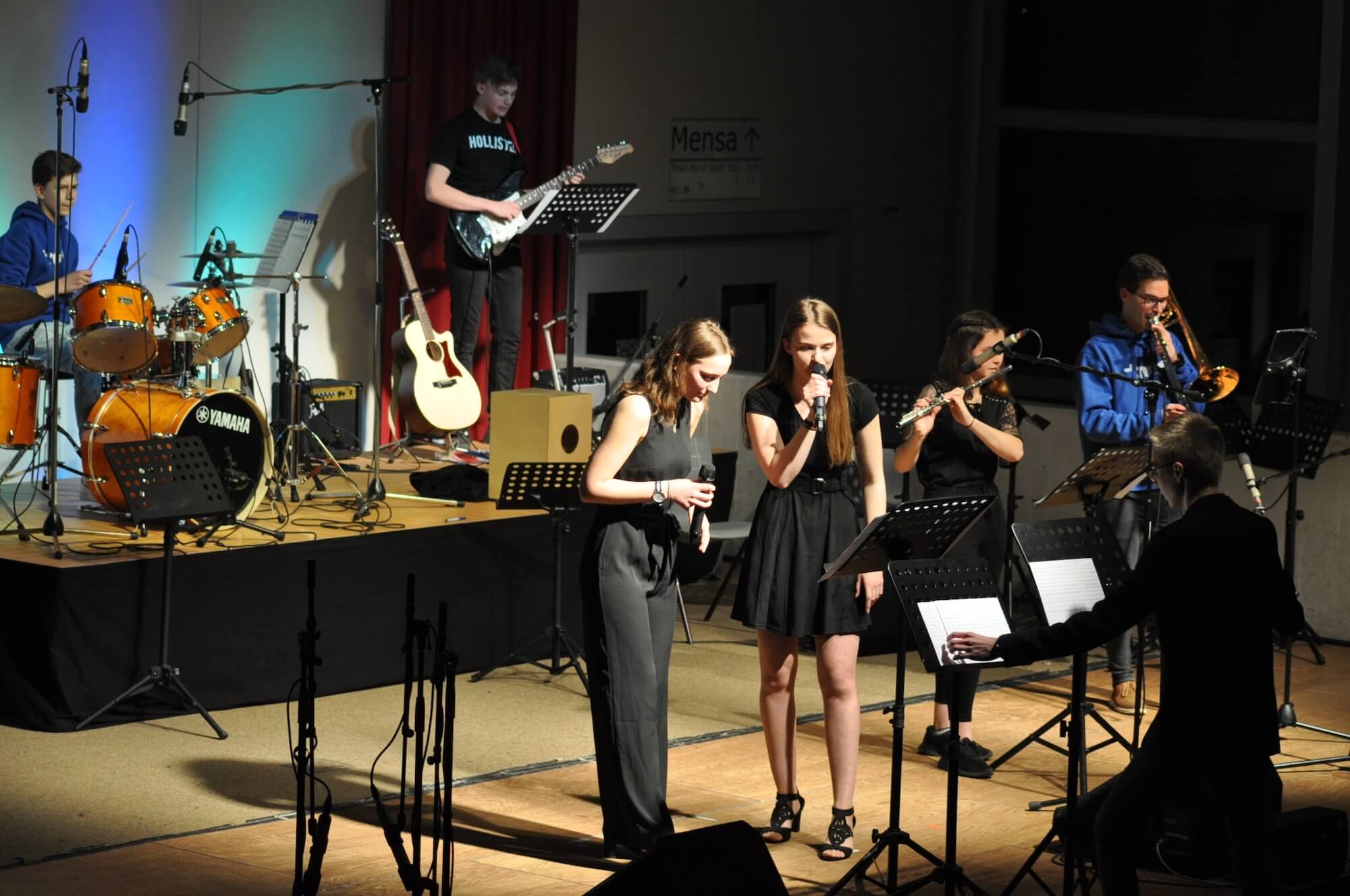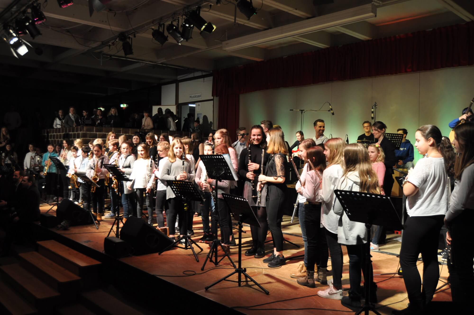 Gut eine Woche nach der probenintensiven Musikfahrt ins Schloss Dreilützow gehörte die Bühne des Forums mehr als 120 musikbegeisterten SchülerInnen unseres Gymnasiums. Rund 400 ZuhörerInnen waren gekommen, um die kleinen und großen Künstler beim Winterkonzert am 14.02.20 live zu hören und zu erleben. Der Funke sprang über und die gute Stimmung sowohl bei den SchülerInnen als auch beim Publikum wird allen Beteiligten noch lange in Erinnerung bleiben. Mit einem sehr abwechslungsreichen Programm (von Rachmaninov bis Mark Forster) sowie mit viel Charme und Talent überzeugten die MusikerInnen das begeisterungsfähige Publikum und ernteten dafür großen Applaus und zahlreiche Spenden. Deutlich zu hören und zu spüren waren die „Nachklänge“ der Musikfahrt – die intensiven Proben hatten sich gelohnt und gaben den Aufführenden die nötige Sicherheit bei den einzelnen acts und das intensive Miteinander auf der Fahrt war auch beim Konzert hinter den Kulissen und auf der Bühne sehr präsent. Zu hören waren nicht nur die Ensembles unserer Schule (Bläserklassen 5 & 6, der Schüler-Lehrer-Chor, die Musical-AG, die Daydreamers und trøt), sondern auch talentierte Gesangs-,Cello-, Klarinetten-, Wort-, und KlaviersolistInnen. Aber auch das Publikum war aktiv dabei und wurde durch das humorvoll-schlagfertige Moderatorenteam Winter/Wagner/Claus immer wieder musikalisch gefordert. Beim großen Finale mit allen Teilnehmern der Musikfahrt am Ende des Abends sang letztlich das ganze Forum – „So ist das Leben“ aus der aktuellen Musicalproduktion. Der Song begleitete noch so manchen als Ohrwurm nach Hause.