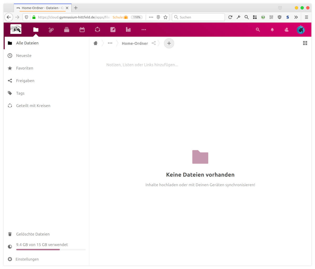Mit der GymCloud des Gymnasiums Hittfeld steht uns seit über einem Jahr ein unglaublich umfangreiches und nützliches Open-Source Tool für das digitale Lernen und kollaborative Arbeiten auf Basis einer Nextcloud-Instanz zur Verfügung. Jetzt – in einer Zeit wo das Lernen zu Hause eine notwendige Form zur Fortführung des Unterrichts ist – werden die umfangreichen Möglichkeiten der GymCloud zunehmend schätzen gelernt und sehr aktiv genutzt. Bereits am ersten Tag der Unterrichtsfortführung war es sogar erforderlich die Serverperformance durch den Wechsel zu einem erheblich schnelleren Server zu steigern. Das sind wirklich beeindruckende und freudige Entwicklungen an unserer Schule, die unsere gesamte Schulgemeinschaft leistet!