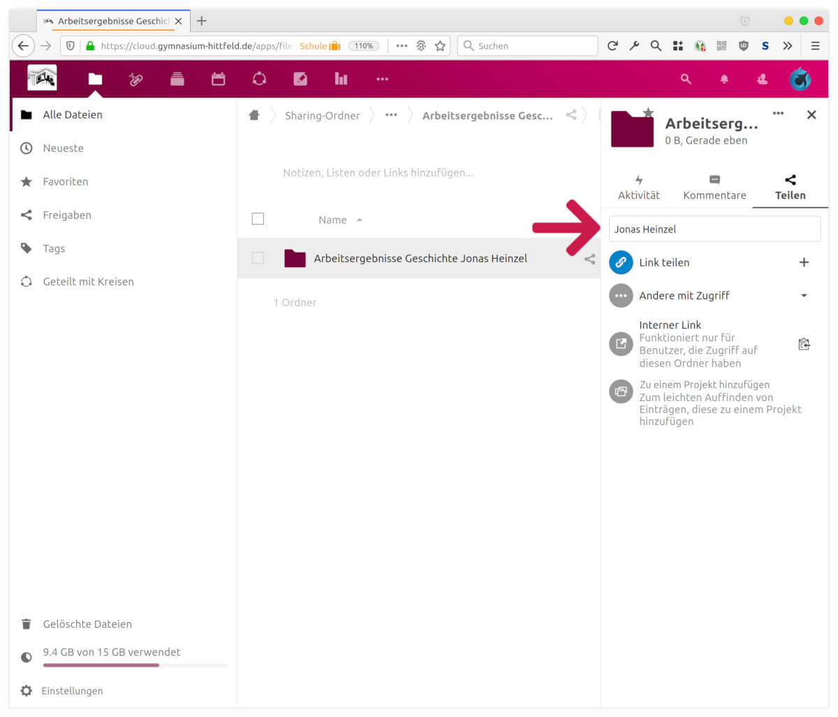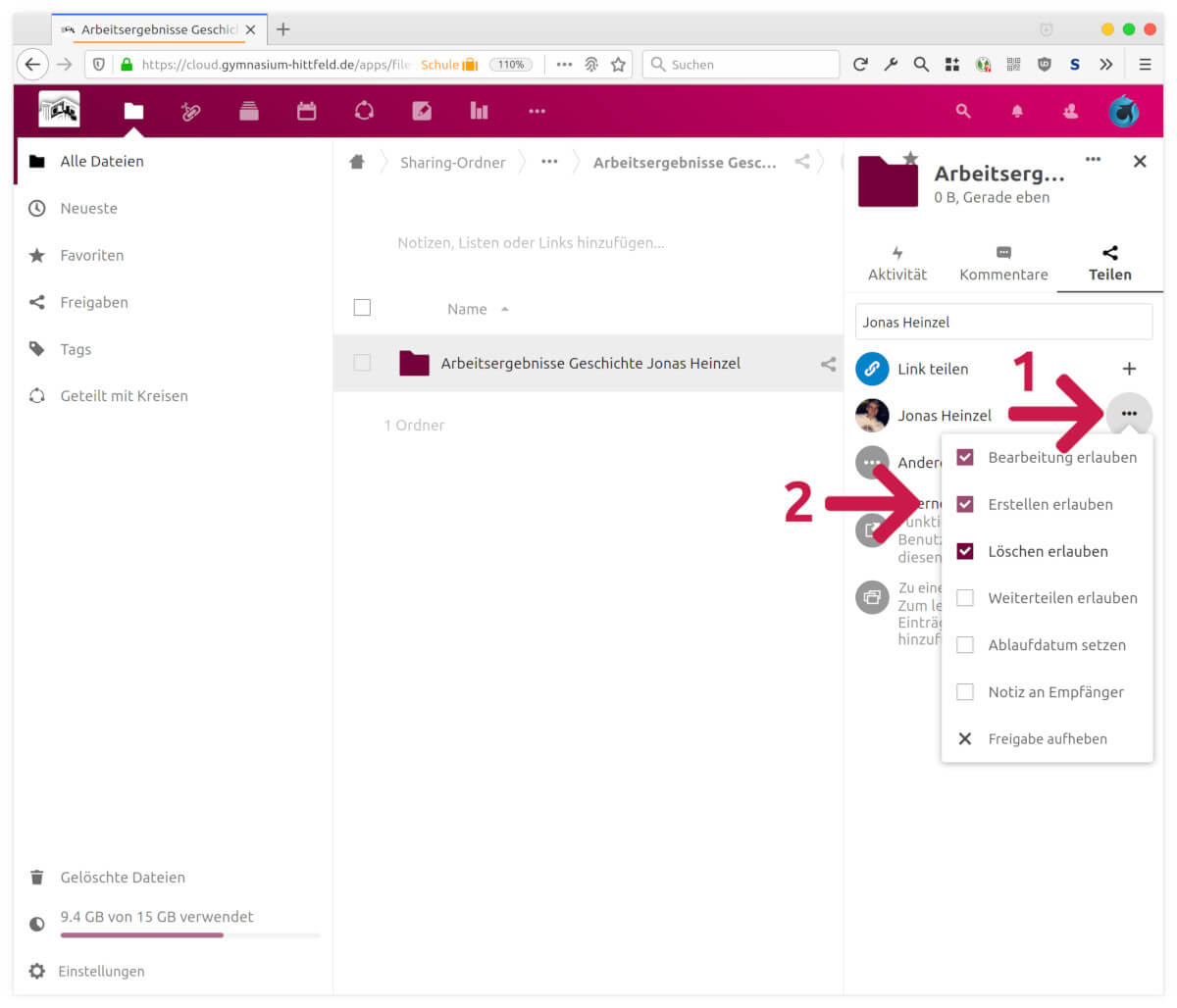 - Für die individuelle Rückmeldung kann die Lehrerin bzw. der Lehrer die Kommentar-Funktion verwenden, die für Dateien und Ordner verfügbar ist. Auf diese weise sind Feedback und Rückmeldung ebenfalls nur für Absender und Adressat einsehbar.