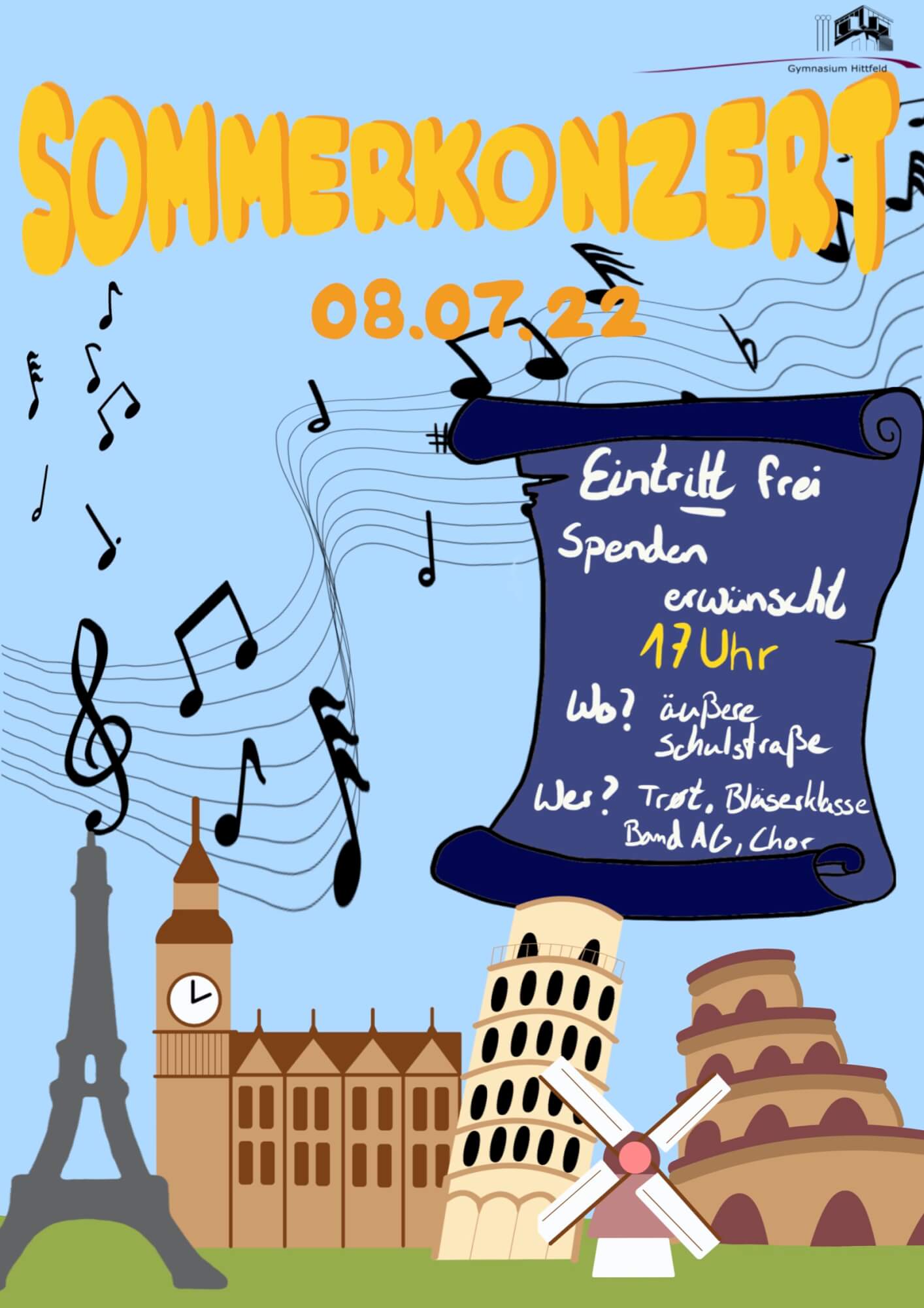 Zum Abschluss unserer Probentage während der Projektwoche laden wir euch alle herzlich zum Open-air-Sommerkonzert ein.