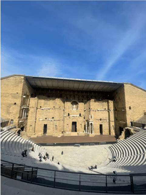 Theater und Aquädukte. Diese Begriffe fallen bestimmt vielen ein, wenn sie an das antike Rom denken. Und mit genau diesen beiden Bauten werden die Schüler sich an diesem Tag auseinandersetzen. Morgens, um kurz nach sieben, sind alle in den Bus eingestiegen, der sie in das südlich gelegene französische Örtchen Orange brachte, in dem sich ein gut erhaltenes römisches Theater befindet. Dieses soll nach der Ankunft in Orange, gegen halb 12, besichtigt werden. Audioguides mit französischer und deutscher Audioausgabe ließen die Schüler mehr über das Theater erfahren, das einst eine Hochburg des Schauspiels und der Ingenieurskunst war. Das Picknick, für welches die Schüler Lunchpakete von ihren Gastfamilien mitgegeben bekommen haben, fand auch noch im Theater statt. Während dieser Zeit konnten sie eines der schönsten Vermächtnisse des römischen Reiches noch einmal auf sich wirken lassen.