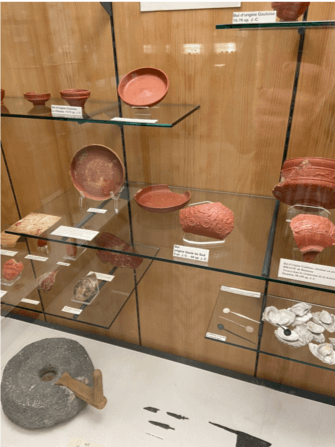 Sie erhielten eine Führung durch die Ausgrabungen einer antiken Therme. Die zweite Gruppe besuchte das anliegende Museum, in dem unter anderem Statuen, Mosaike und Öllampen ausgestellt waren. Letztere lernten die Schüler in einem Workshop selber herzustellen . Nach einer kleinen Stärkung, und nachdem jeder seine Öllampe getöpfert hatte, ging es mit dem Bus wieder zurück nach Chambéry, vorbei an den zahlreichen Olivenbäumen, die nach und nach den hohen Bergen weichten…