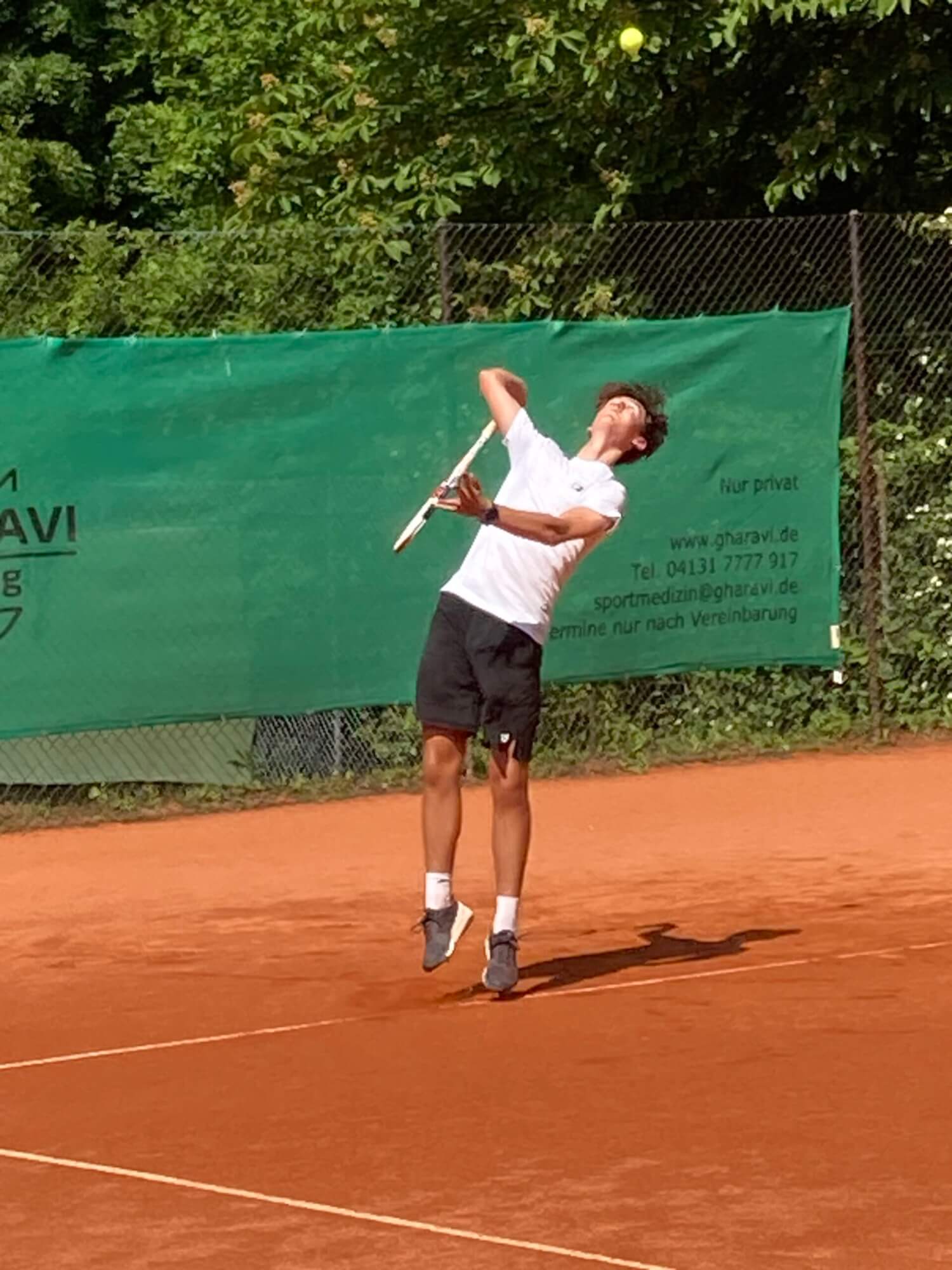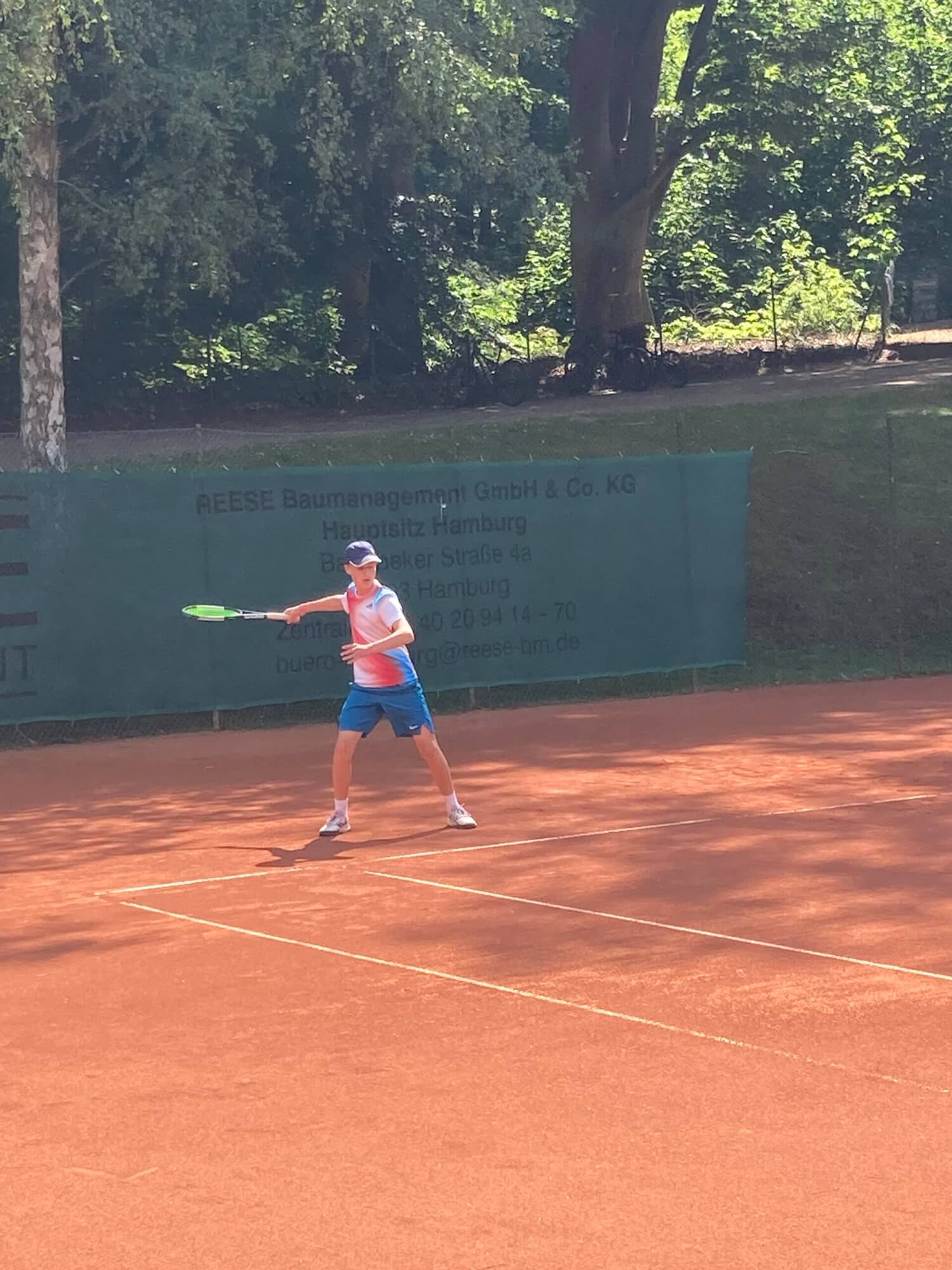 Der Bezirksentscheid, der auf der wunderschönen Tennisanlage des THC Lüneburg stattfand, startete dabei vielversprechend. Kaum auf der Anlage angekommen, erfuhren wir von der Turnierleitung, dass wir als topgesetzte Mannschaft im Viertelfinale Freilos hatten. So konnten wir uns in aller Ruhe einspielen und in den Viertelfinalbegegnungen unsere möglichen Gegner beobachten. Im Halbfinale mussten wir dann gegen das Gymnasium Kattenberge aus Buchholz antreten. Lasse M. und Jonah M. gewannen dabei ihre Einzel jeweils souverän mit 6:0. Auch Thomas S. sorgte mit einem 6:1 für den dritten Punkt. Philip O. siegte ebenfalls souverän mit 6:0, sodass es nach den Einzeln 4:0 stand. Im ersten Doppel siegten sowohl Lasse/Jonah als auch Thomas/Stephanos mit 6:0 und machten den Finaleinzug perfekt. Hier wartete mit der Eichenschule Scheeßel eine spielstarke Mannschaft, die sich im Halbfinale souverän mit 6:0 gegen das Gymnasium Salzhausen durchgesetzt hatte. Aber auch im Finale spielten wir überzeugend. Lasse M. siegte mit 6:0. Jonah M. mit 6:2, Thomas S. behielt mit 6:3 die Oberhand und Stefanos Gerde gewann mit 6:1, sodass nach den Einzeln der Sieg schon gesichert war. Die Doppel Lasse/Jonah (6:1) und Stefanos/Philip (6:0) sorgten schließlich für den 6:0 Gesamtsieg und den Einzug ins Landesfinale am 19.06.23 in Hannover.