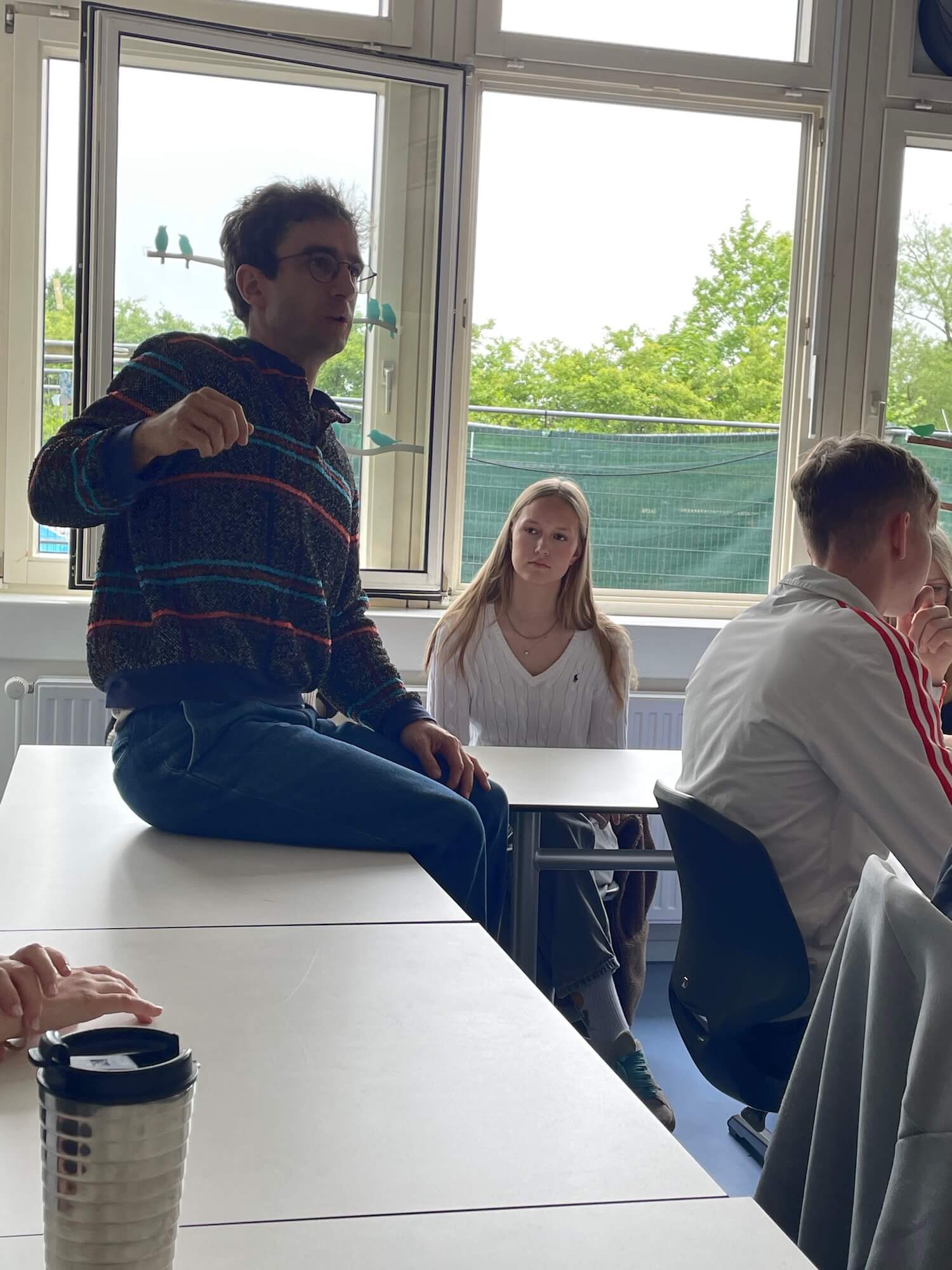Nach der ca. einstündigen Aufführung gab es dann die Möglichkeit, dem Darsteller und der mit ihm vom Thalia Theater gekommenen Theaterpädagogin Marlene Kampwirth Fragen über das Stück oder das Theater allgemein zu stellen.