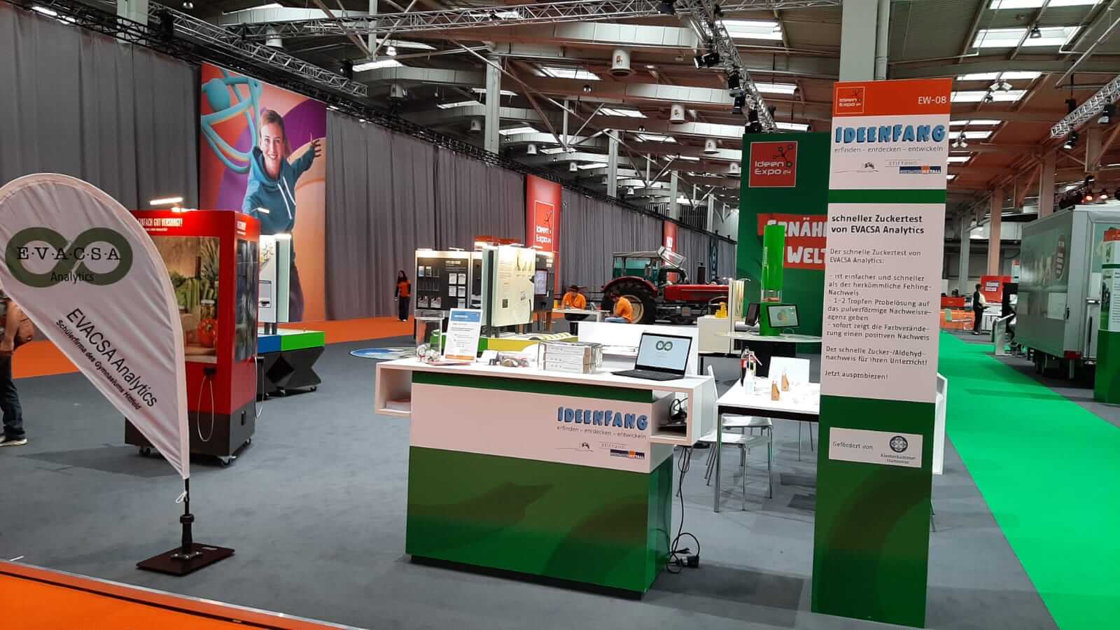Im Januar 2024 hatte sich die Schülerfirma des Gymnasiums Hittfeld mit ihrem ‚schnellen Zuckertest von EVACSA Analytics‘ für die Endrunde des Ideenfang Wettbewerbs der Stiftung Niedersachsenmetall qualifiziert. Damit durfte die Schülerfirma 9 Tage lang ihr Produkt auf der IdeenExpo ausstellen. Die Stiftung Niedersachsenmetall finanzierte den professionellen Messestand, Übernachtung, Catering sowie Anreise.